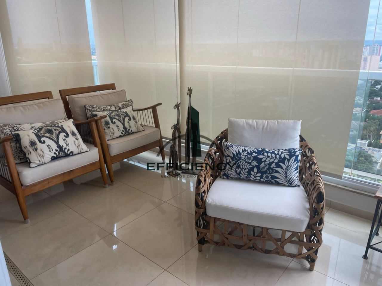 Suíte master com banheira, Piso porcelanato, Marmores crema marfim , fechamento da sacada com vidro , ar condicionado em todos ambientes, Completa em armários, e painéis,Planta modificada do padrão,Prédio conta com academia, piscina coberta aquecida , piscina aberta, Salão de festa , playground , quadra de squash, 4 vagas, depósito individual na garagem ,portaria monitorada 24hs